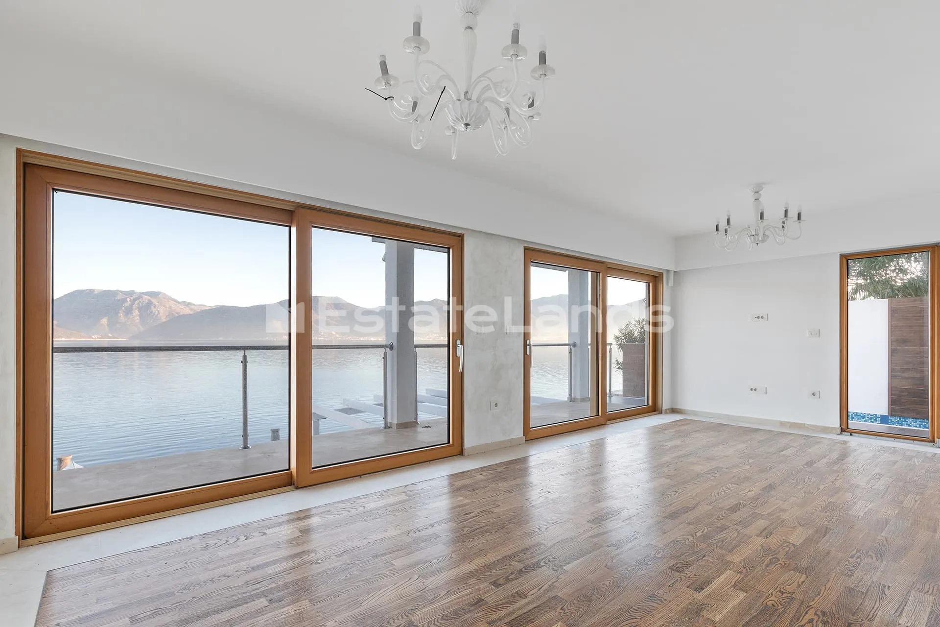 - large terrace in front of the villa with access to a jetty featuring a yacht berth and connections for water and electricity