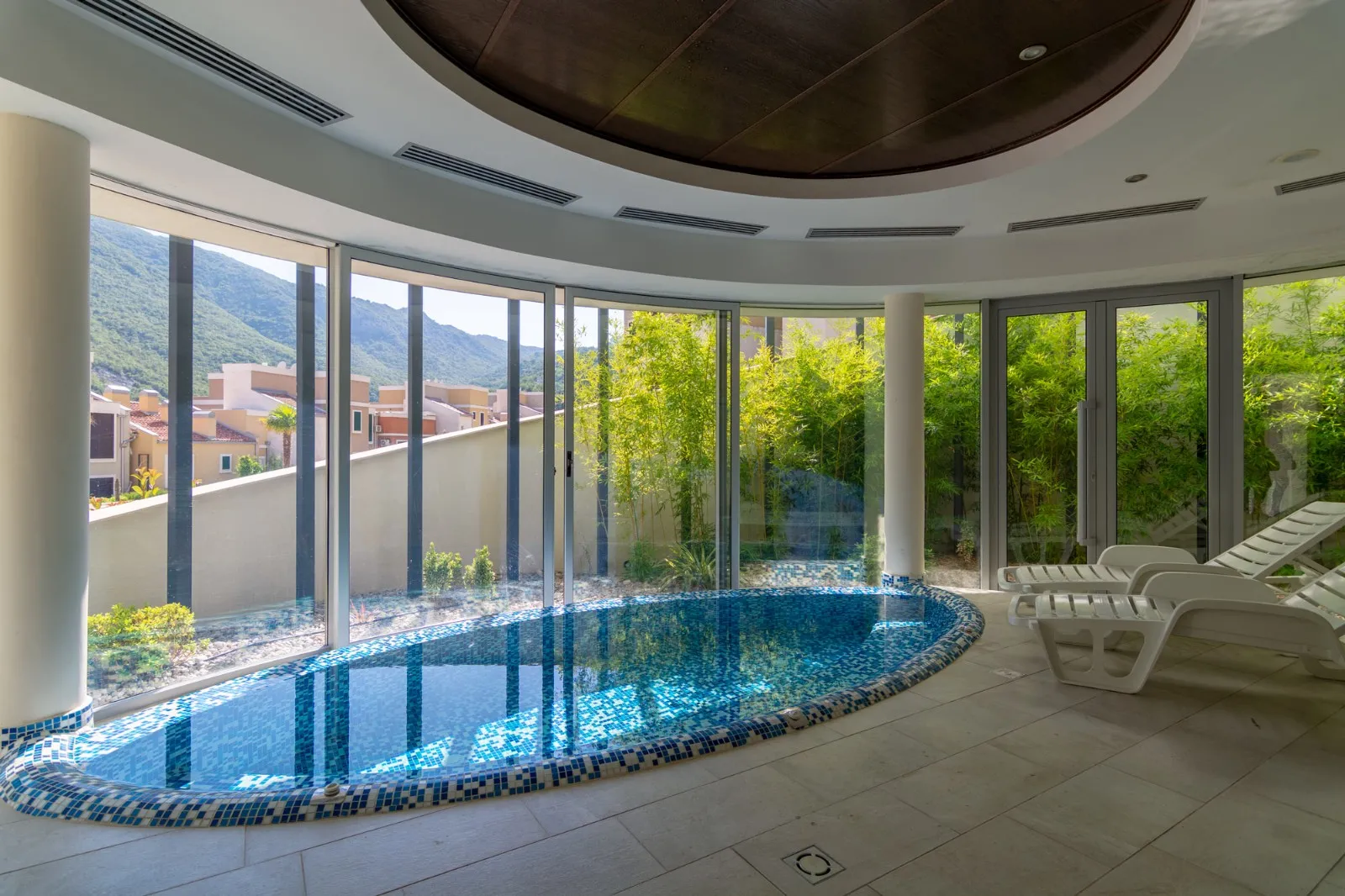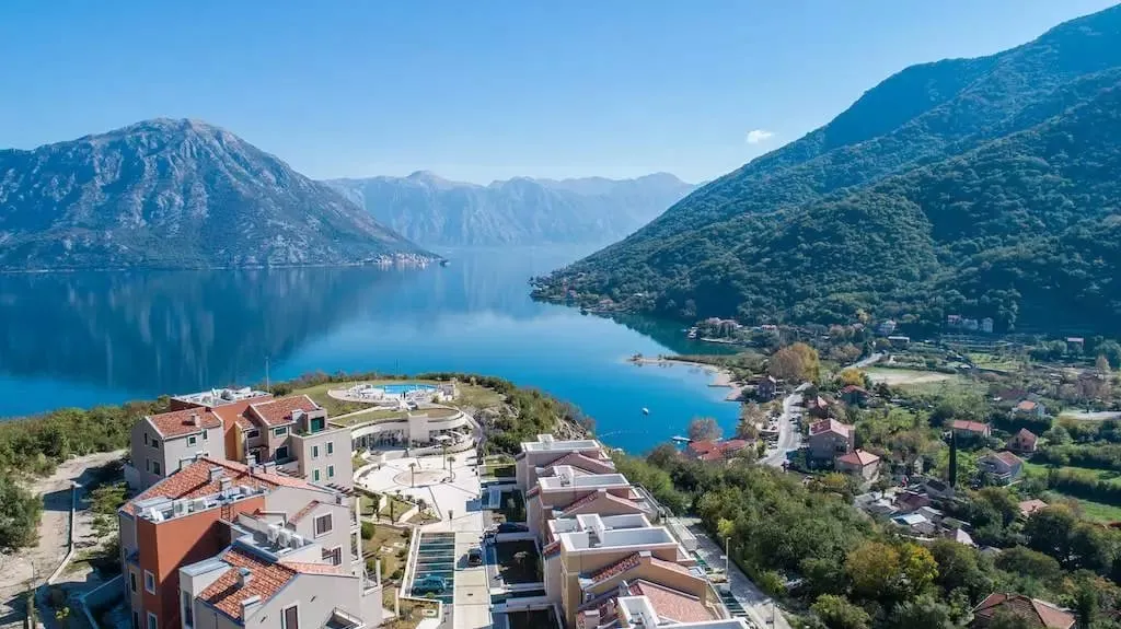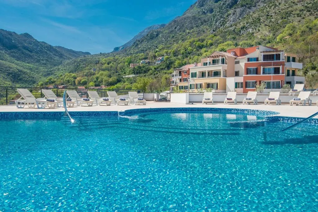 The complex is in a quiet area and features a SPA center and an infinity pool. It’s just 100 meters from the beach, restaurants, and a supermarket, offering excellent views of the Bay of Kotor.