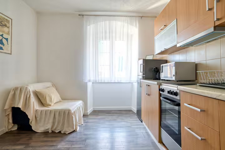The apartment is currently used for short-term rentals, generating an annual gross income of €23,000–25,000.